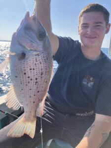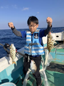 大型のアカジンが釣れます。アーラミーバイも!!